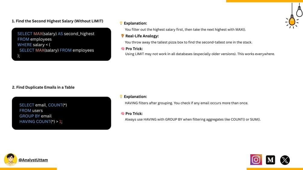 Top 50 SQL Interview Queries, a battle-tested collection of the most frequently asked, most misunderstood, and most important SQL challenges every analyst or data engineer needs to master.
